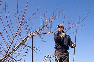 この木は5年目の木で、将来どのように木を仕立ててゆくかで切る枝や残す枝を考えながら剪定するので時間もかかってくる。